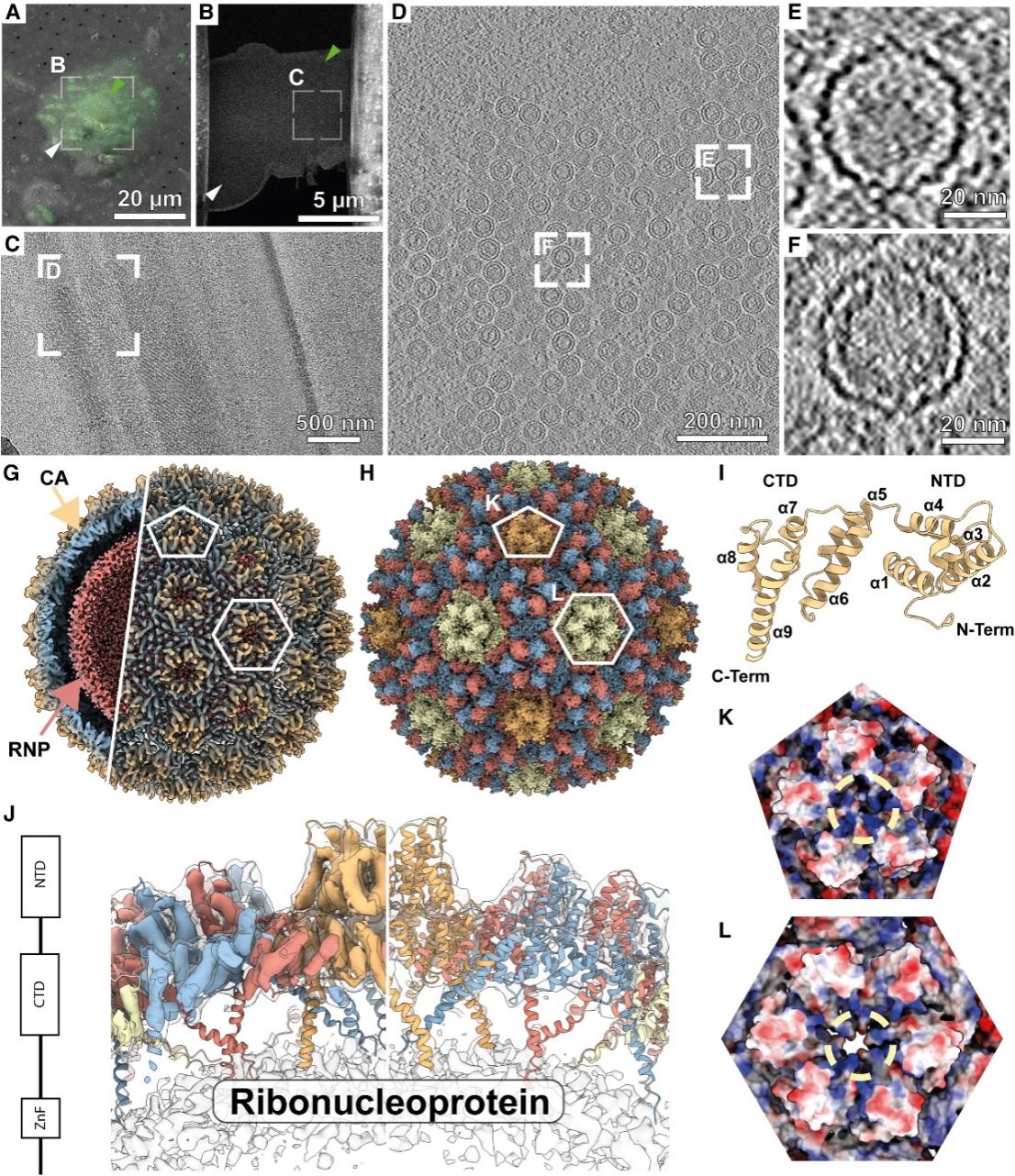 长末端重复序列(LTR)逆转录转座子属于可自主复制的遗传转座元件(TEs),能够整合到宿主基因组。在动物研究中,黑腹果蝇作为TE研究的重要模式生物,其体内存在包括Ty1-copia家族在内的多种LTR逆转录转座子—该家族与逆转录病毒存在进化关联,并可形成类病毒颗粒(VLPs)。本研究采用冷冻聚焦离子束(FIB)铣削与提取技术对卵巢细胞及完整卵室中的copia类病毒颗粒进行原位观测,通过冷冻电子断层扫描将copia衣壳结构分辨率提升至7.7埃。研究发现,虽然细胞质中的copia类病毒颗粒尺寸各异,但核内颗粒却呈现均一性并形成致密簇群,这一现象支持"核输入机制充当尺寸选择器"的理论模型。在缺乏抑制转座子的piRNA通路的果蝇实验中,作者观察到copia在精子发生过程中向细胞核的转位现象。这些发现为理解活性LTR逆转录转座子的复制周期及细胞结构生物学提供了新见解。