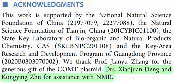 学科交叉公共技术服务平台800兆液体核磁共振波谱仪取得了安装运行后第一个重要成果,支撑我校一篇高水平论文发表。