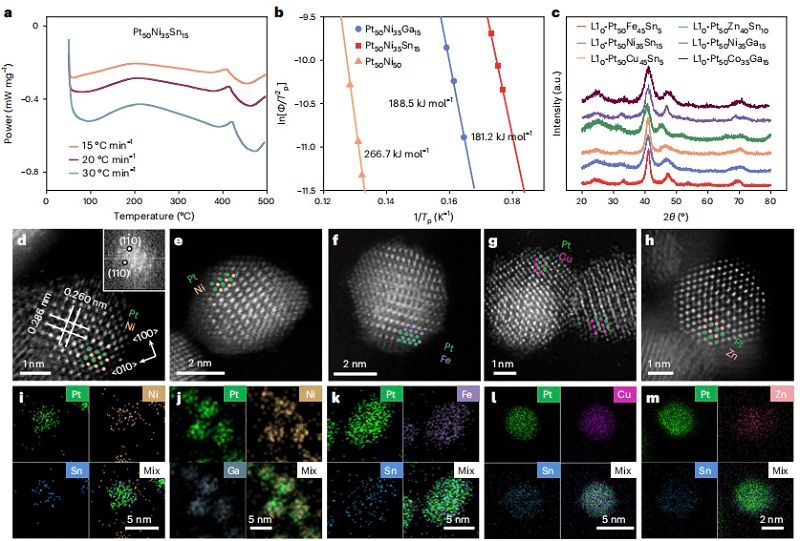 通过调节金属键强度,可大规模合成用于实用燃料电池的金属间纳米晶体