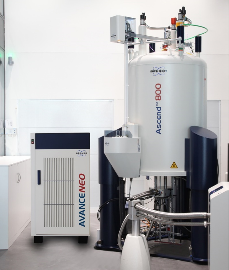 800M核磁共振谱仪由于超高磁场强度能够有效提高检测灵敏度及谱图分辨率;配备5mm液氦超低温三共振探头,通过液氦降低前放和探头线圈温度,线圈的功效得到极大改善,降低噪声,有效提高S/N信噪比;可检测1H、13C、15N、19F等原子核的一维和各种二维相关谱。